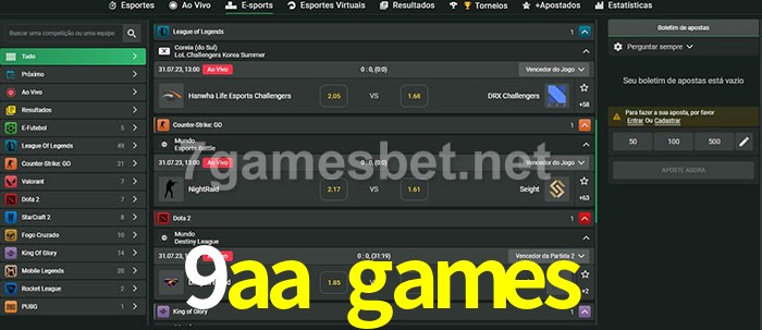 O 9aa games oferece uma grande seleção de opções de apostas em e-sports com probabilidades competitivas